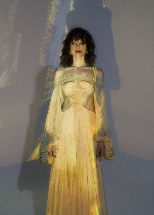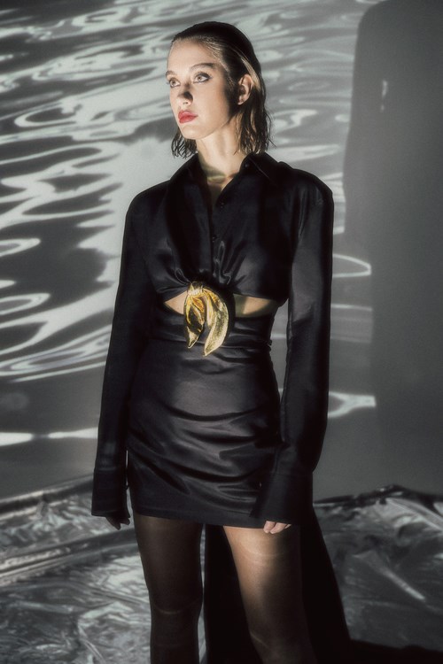 Một thiết kế được tạo ra từ kĩ thuật bias-cut thể hiện kĩ nghệ của những nghệ nhân tại xưởng CONG TRI. Mẫu thiết kế màu vàng thanh lịch và tao nhã, được làm từ chất liệu double satin. Điểm đặc biệt nằm tại chi tiết eo, thay vì chiết eo tạo đường cong, CONG TRI sáng tạo những nếp đổ gợi lên sự phóng khoáng, khác biệt.