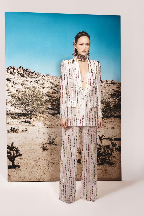Bên cạnh đó là sự góp mặt của một vài sáng tạo thể hiện rõ khả năng xử lý chất liệu cũng như trang trí bề mặt của Công Trí: từ đầm dài gợi nhắc mẫu tank-dress năng động vốn được yêu chuộng từ nhiều năm đổ lại đây cho tới bộ suit phom dáng thoải mái, thích nghi hoàn hảo với nhịp sống hiện đại nhưng vẫn đề cao tính sang trọng.