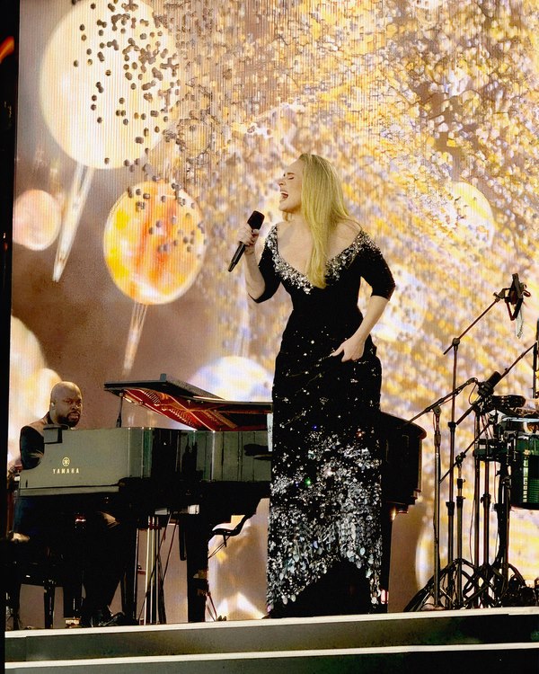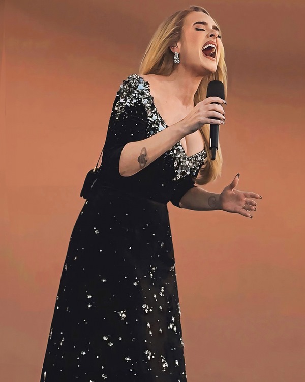 Ngoài giọng hát có khả năng bóp nghẹt trái tim hàng triệu khán giả, Adele còn củng cố thương hiệu cá nhân với những chiếc đầm đen quyến rũ. Cô đặc biệt tin tưởng Dior,Valentino,Schiaparelli, … và trong hình là mẫu đầm của nhà Mốt Công Trí tại đêm diễn mới nhất.