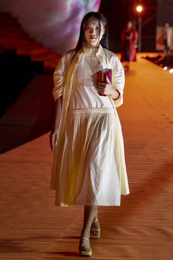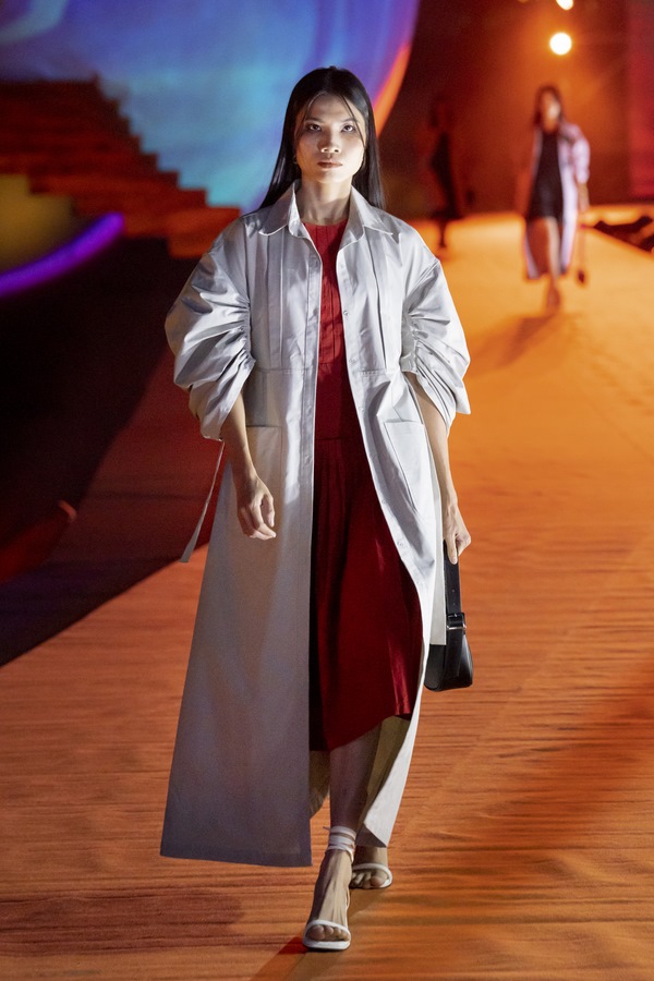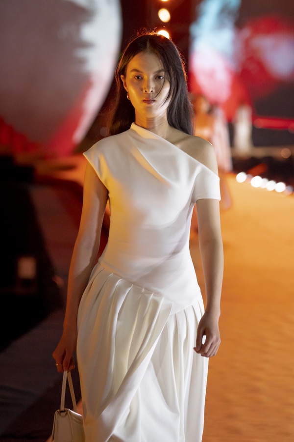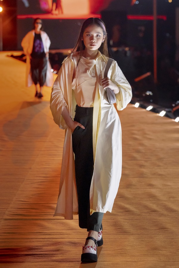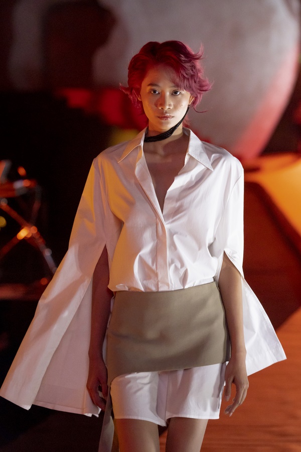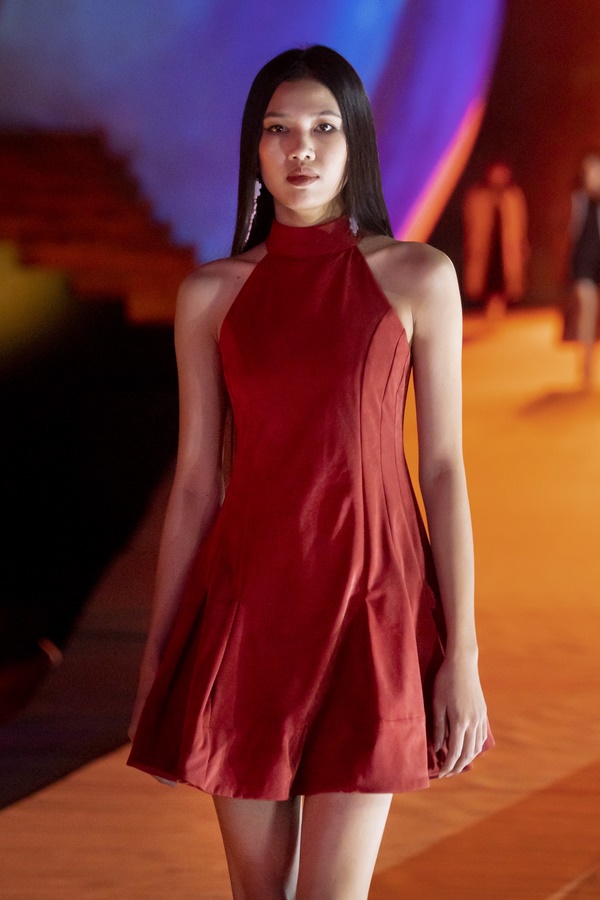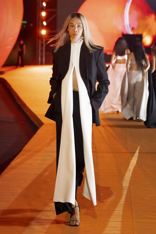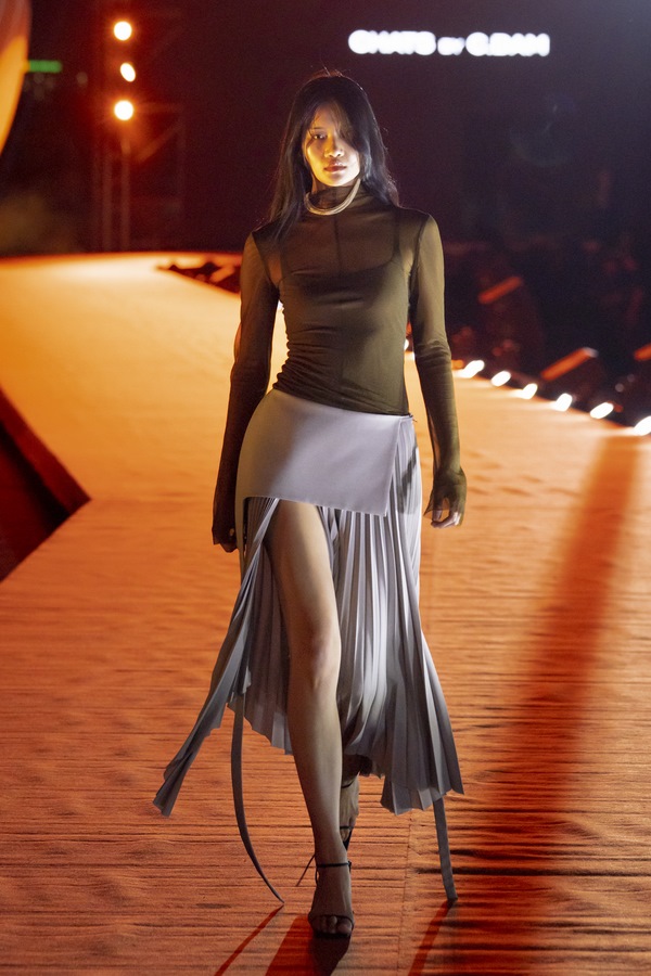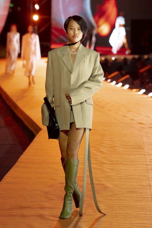 BST “Figure” của CHATS by C.DAM tại ELLE Fashion Show 2022 vẽ nên hình tượng của người phụ nữ mạnh mẽ, luôn làm chủ giấc mơ đời mình. Những trang phục của CHATS có nhiều phom dáng và đường cắt thẳng, sắc nét lấy cảm hứng từ nét vẽ tối giản, dứt khoát của tranh Mondrian đầu thế kỷ 20; BST còn là cuộc chơi của NTK với khái niệm “đối nghịch” trong phom dáng của menswear với những đường cắt mạnh mẽ nhưng vẫn có sự bay bổng, uyển chuyển của dáng hình chiếc áo dài; đối nghịch trong tỷ lệ ngắn – dài giữa áo và chân váy…