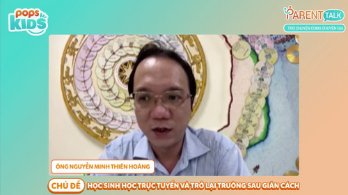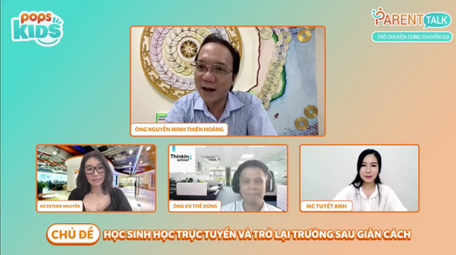 Số đầu tiên của series Talkshow POPS KIDS PARENT TALK – TRÒ CHUYỆN CÙNG CHUYÊN GIA với chủ đề “Học sinh học trực tuyến và trở lại trường sau giãn cách” đã được phát sóng trên các nền tảng POPS Kids, chương trình do POPS phối hợp cùng các cơ quan, đơn vị hàng đầu về giáo dục tổ chức.