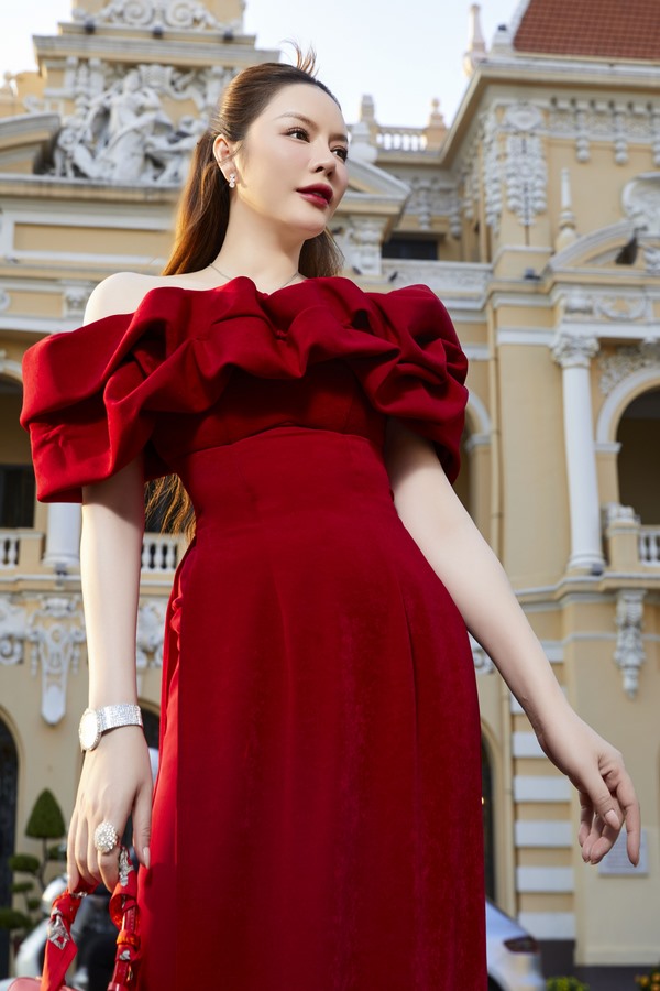 Đã từ rất lâu rồi, gam màu đỏ đã gắn liền với không khí rạo rực của những ngày Tết. Nhưng không phải trang phục màu đỏ nào cũng có thể bảo toàn phong độ mặc đẹp cho chị em. Lý Nhã Kỳ chọn áo dài tông màu đỏ trầm, tôn da và làm các quý cô sang trọng, có sự nổi bật vừa đủ, đem theo ước muốn về một năm mới hạnh phúc và may mắn.