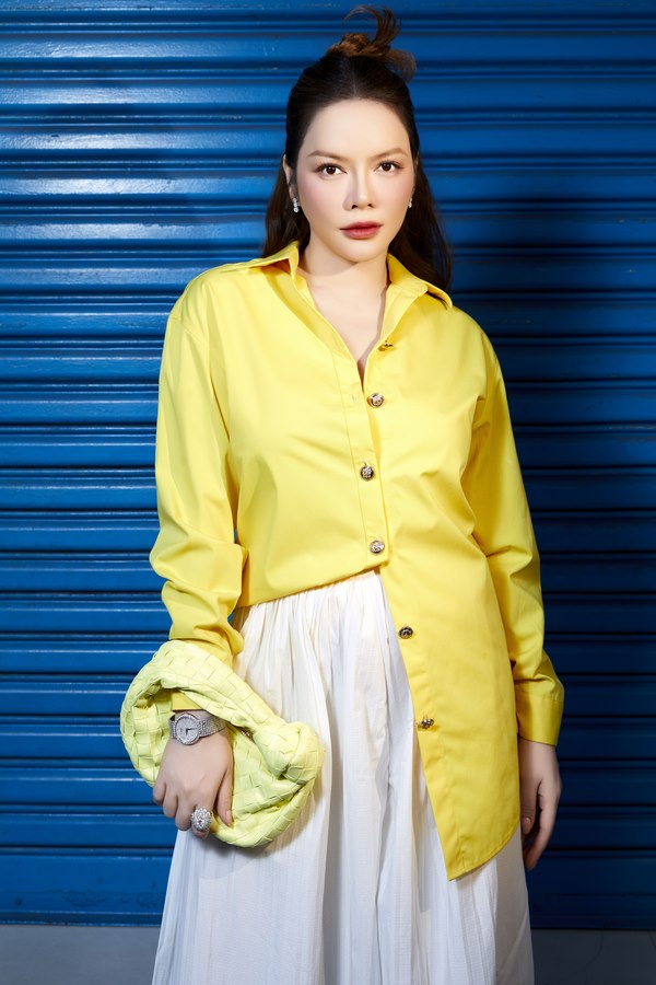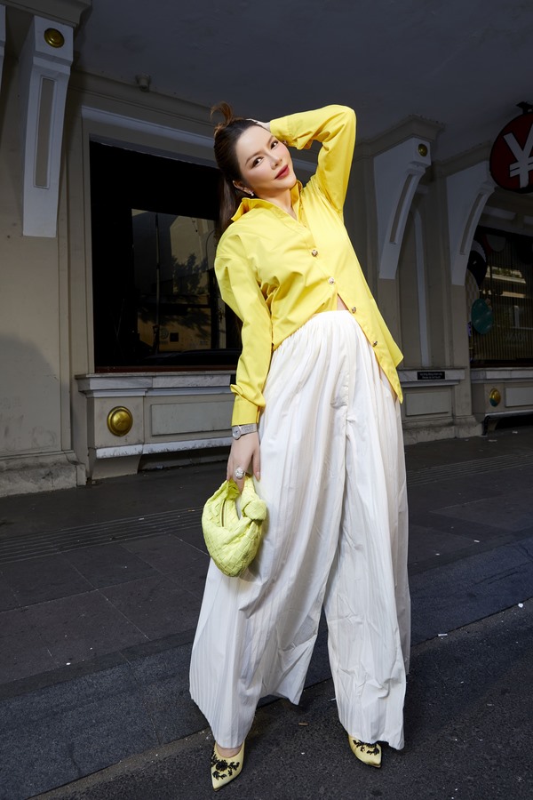 Lý Nhã Kỳ chọn 4 tông màu xuống phố trong bộ ảnh này. Tông màu vàng hòa hợp với không khí mùa xuân tươi vui. Outfit đơn giản với áo sơ mi bất đối xứng, quần ống rộng không cầu kỳ nhưng lại đẹp hút mắt. Và bí quyết ở đây chỉ đơn giản là tập trung vào sự tối giản, thoải mái nhưng đầy chất chơi.