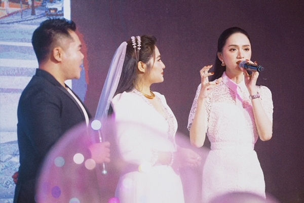 Bên cạnh đó, ca sỹ Hoàng Tôn , hoa hậu Hương Giang và nhạc sĩ Lưu Thiên Hương cũng dành nhiều lời chúc phúc cho cô dâu và chú rể trên sân khấu.