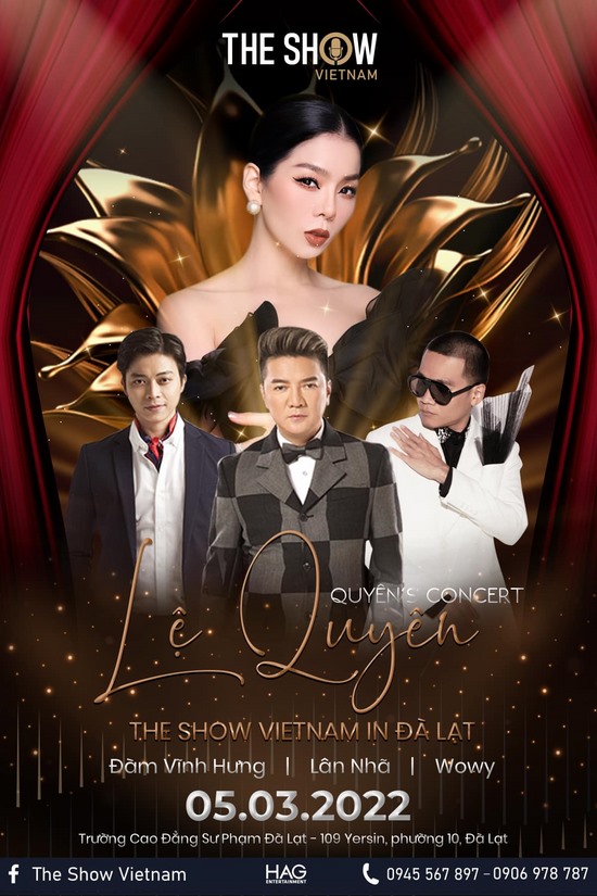 The Show Vietnam chính thức công bố đêm nhạc của “Nữ hoàng phòng trà” Lệ Quyên với chủ đề Quyên’s Concert cùng 3 vị khách mời đặc biệt: “Ông hoàng nhạc Việt” Đàm Vĩnh Hưng, nam ca sĩ Lân Nhã và Wowy – “Lão Đại” của Rap Việt.