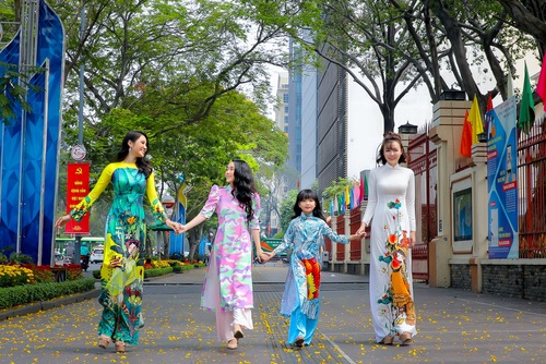 Các người đẹp khoe sắc trong áo dài của nhà thiết kế Ruby Trần.