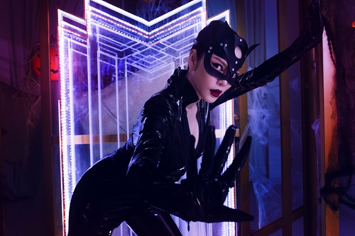 Trong đêm Halloween, Lý Nhã Kỳ chọn hóa thân thành Cat Woman, một trong những truyện tranh nổi tiếng xuất bản bởi DC Comics được dựng thành phim. Miêu nữ Catwoman thường được biết đến là một nhân vật phản ảnh hùng, vừa là người yêu và là đối thủ của nhân vật Batman. Cô là một siêu tội phạm chuyên trộm đồ nữ trang ở các tiệm nữ trang. Lý Nhã Kỳ biến hóa với một bộ đồ đen ôm sát cơ thể gợi cảm cùng mặt nạ mèo đầy cá tính mô phỏng theo dáng của một con mèo. Thần thái sang chảnh, nhan sắc đỉnh cao giúp nữ diễn viên khiến fan cảm thấy vô cùng thích thú với hình tượng mạnh mẽ nhưng đầy lôi cuốn, sexy của miêu nữ.