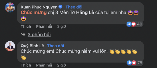 Một số bạn bè thân thiết với Minh Hằng trong giới showbiz Việt cũng chia sẻ lại bài đăng của nữ nghệ sĩ. Điển hình như Lý Nhã Kỳ bày tỏ: “Chúc em hạnh phúc nha Hằng. Nhớ tặng chị hoa cưới để xin vía em nha”.