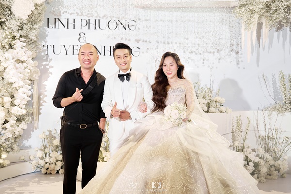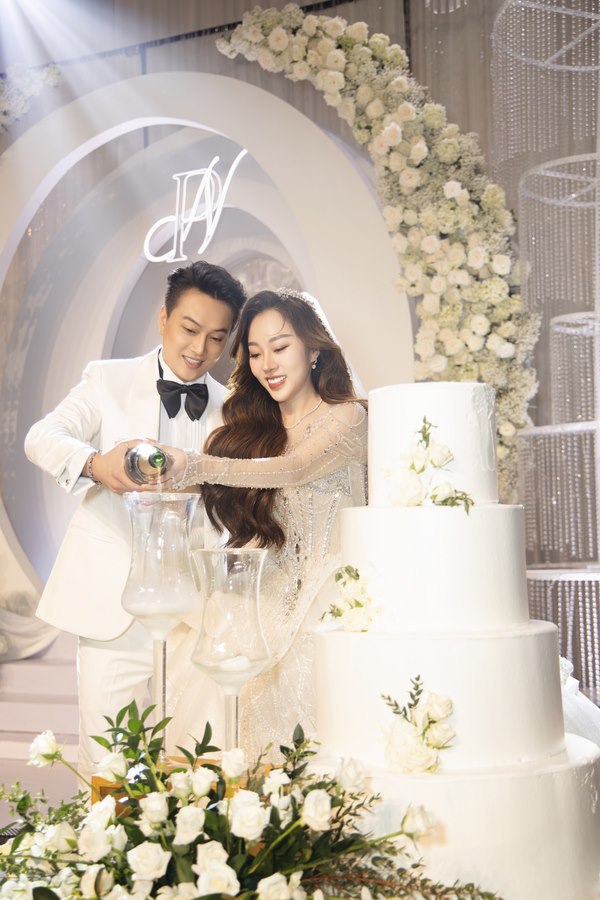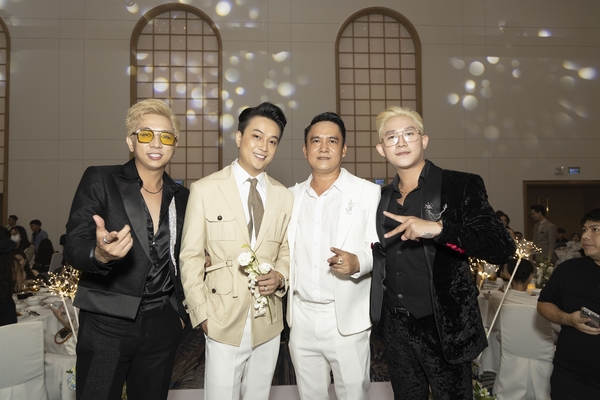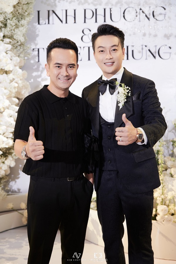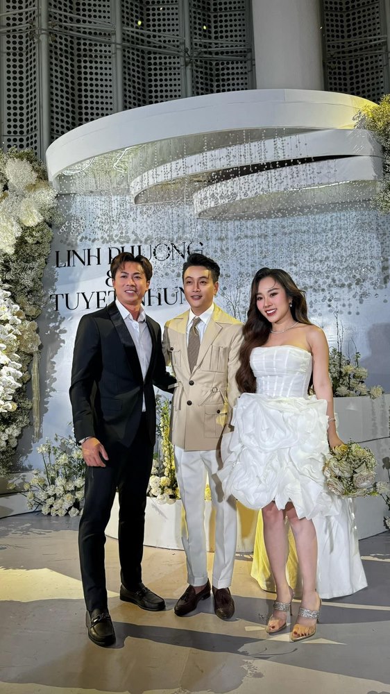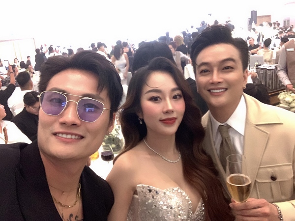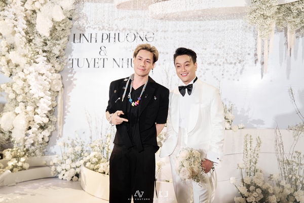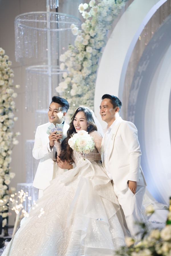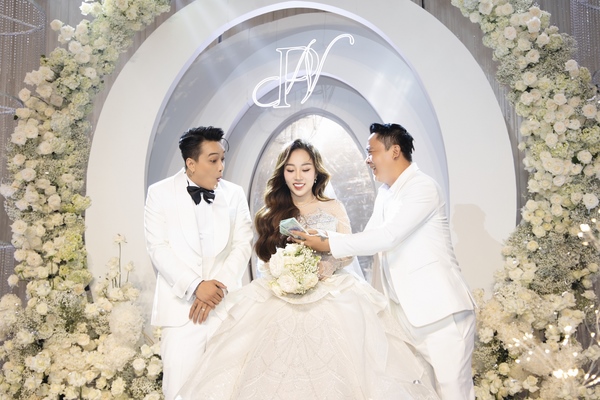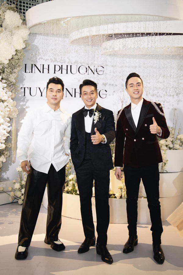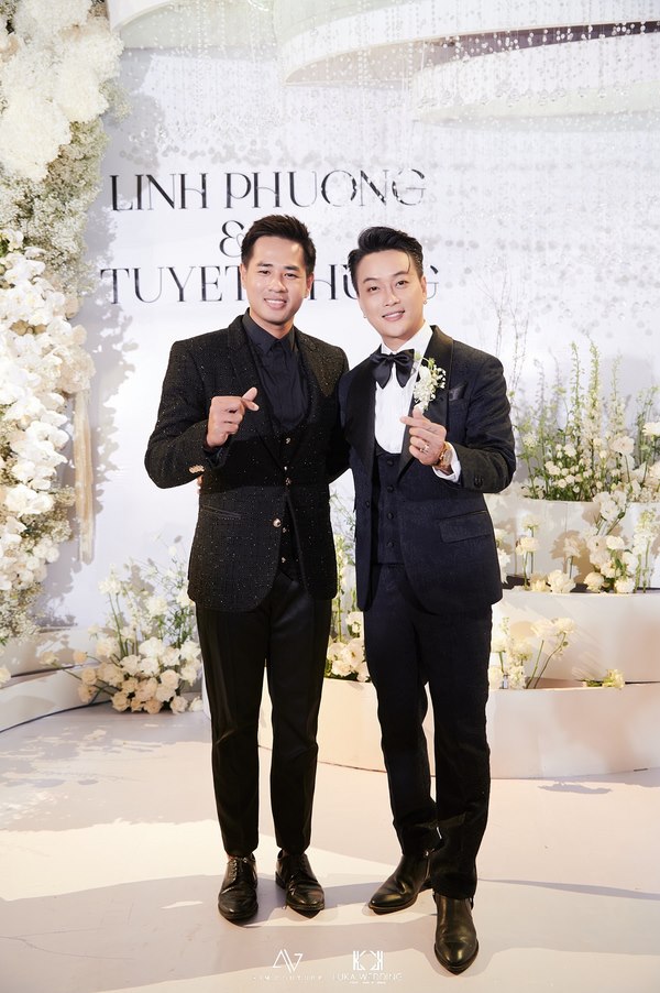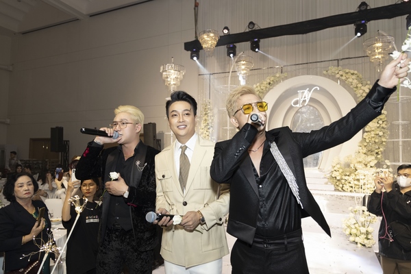 Không gian buổi tiệc được bài trí sang trọng, mang tông trắng chủ đạo, ngập tràn hoa tươi. Rất nhiều nghệ sĩ và bạn bè đồng nghiệp của cặp đôi đã đến chung vui chúc mừng.  Giọng ca sinh năm 1990 diện vest lịch lãm, bày tỏ niềm hạnh phúc khi chính thức “về chung nhà” với người yêu sau 3 năm hẹn hò.