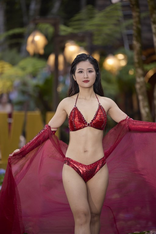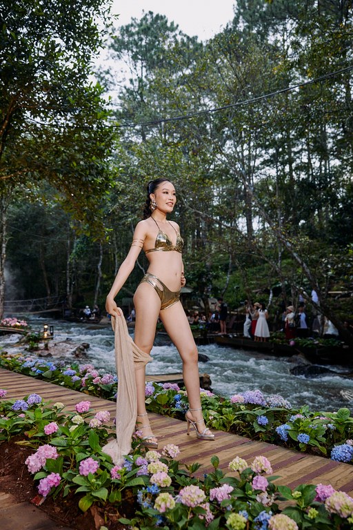 Thay vì diễn ra tại bờ biển hoặc hồ bơi như thông thường, năm nay các thí sinh Fitness Supermodel Vietnam 2025 đã bất ngờ trải qua phần thi trình diễn trang phục swimwear đầy bắt mắt bên cạnh dòng suối trong xanh nước chảy cuồn cuộn va đập vào vách đá vang vọng cả núi rừng, men theo những con đường nhỏ ngập sắc hoa Cẩm tú cầu.