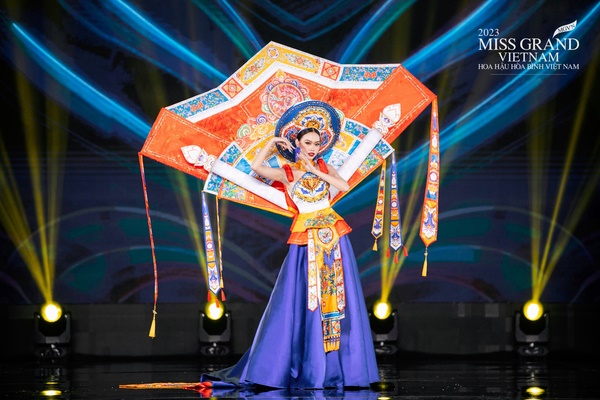 Khoác lên mình thiết kế khá nặng và cồng kềnh, Đặng Hoàng Tâm Như gây ấn tượng với khán giả bởi bản lĩnh và phong thái tự tin tại đêm trình diễn trang phục dân tộc của Miss Grand Vietnam 2023.