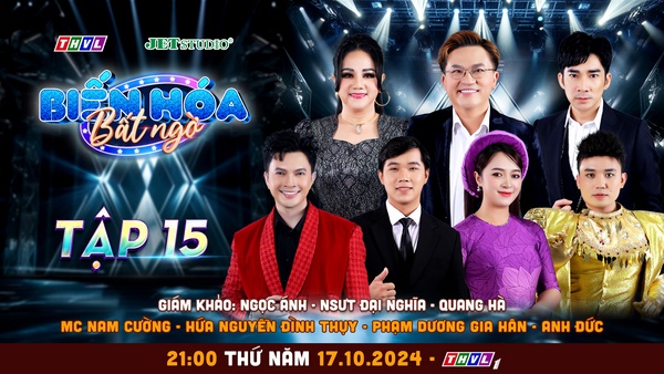 Bên cạnh giám khảo khách mời là danh ca Ngọc Ánh, trên hàng “ghế nóng” của Biến Hóa Bất Ngờ tập 15 còn có sự góp mặt của ca sĩ Quang Hà và giám khảo xuyên suốt – NSƯT Đại Nghĩa. Tập phát sóng tuần này sẽ là cuộc tranh tài kịch tính của ba giọng ca với ba màu sắc âm nhạc hoàn toàn khác biệt với Anh Đức (hóa thân ca sĩ Tùng Dương), Gia Hân (hóa thân NSND Thu Hiền) và Đình Thụy (hóa thân danh ca Tuấn Ngọc).