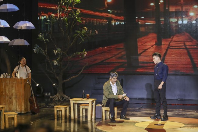 Với chất giọng sâu lắng, da diết, Hòa Thuận dẫn dắt khán giả bước vào miền ký ức thấm đẫm nỗi nhớ, nơi tình yêu và chia ly đan xen qua từng câu hát. Ở phần đầu, nam diễn viên gợi lại những kỷ niệm xưa qua ca khúc Hai Chuyến Tàu Đêm.
