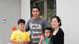 Hoa hậu Phạm Hương cùng hai con trai Maximus và Apollo diện áo dài đỏ, đón Tết Quý Mão tại Mỹ. Trang phục được nhà...