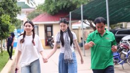 Hai con gái MC Quyền Linh gây bão mạng xã hội với sắc vóc xinh đẹp khi đến thăm bố tại phim trường ghi hình...