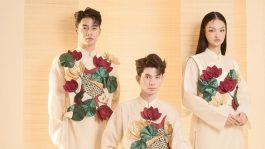 Nguyễn Minh Công gửi gắm văn hóa tranh Đông Hồ “Cá chép đàn” vào áo dài Tết