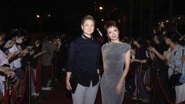 Trên thảm đỏ khai mạc Vietnam International Fashion Week tối 13/11, Thúy Vinh cùng Thúy Hiền diện đồ ton sur ton. Cặp sao mặc trang...