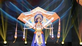 Đặng Hoàng Tâm Như trình diễn trang phục dân tộc lấy cảm hứng từ nghệ thuật Pháp lam Huế