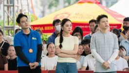 Hoa hậu Hoàng Thanh Nga cùng ông xã tham dự Lễ Kỳ Siêu tưởng niệm anh linh liệt sĩ tại Công viên Văn hóa Lê Thị Riêng