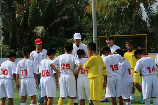 Không chỉ trực tiếp hướng dẫn chuyên môn, HLV Kim Sang Sik còn chia sẻ nhiều kinh nghiệm quý báu về tinh thần thi đấu quốc tế, chuẩn bị cho hành trình sắp tới của các cầu thủ nhí tại Thái Lan. Ông nhắn nhủ: “Tôi nghĩ các em chỉ cần chơi tốt như khi tập luyện ở Việt Nam, thì hoàn toàn có khả năng chiến thắng. Trong những năm gần đây, đội tuyển Việt Nam cũng đã từng vượt qua đội tuyển Thái Lan. Vì vậy, tôi tin rằng nếu giữ được tinh thần và phong độ như hiện tại, các em sẽ làm được điều đó khi du đấu tại Thái Lan”.
