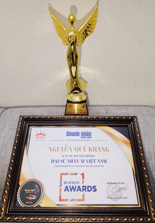Danh hiệu Đại sứ Nhân ái Việt Nam năm 2022 chính là sự ghi nhận cho những đóng góp tích cực của Đạo diễn Nguyễn Quý Khang trong công tác thiện nguyện vì cộng đồng năm 2022.