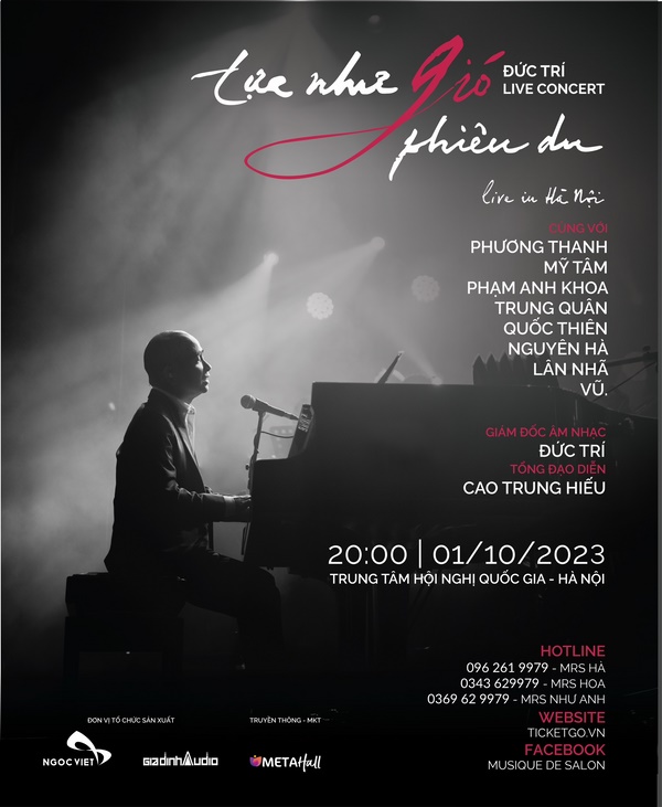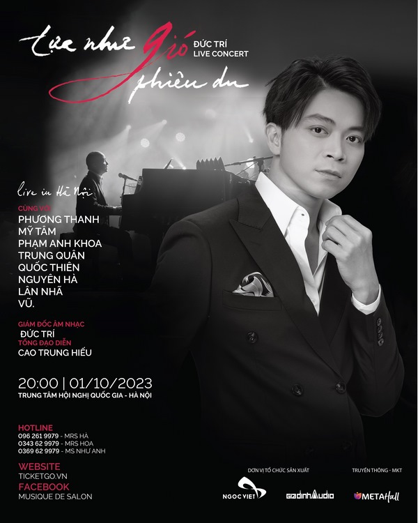 Sự kiện live concert Đức Trí “Tựa như gió phiêu du” gây được sự chú ý của khán giả trong suốt 1 tháng qua. Và ngày 1/10, đêm nhạc của anh sẽ chính thức diễn ra tại Trung tâm Hội nghị Quốc gia Hà Nội với sức chứa khoảng 4000 người.