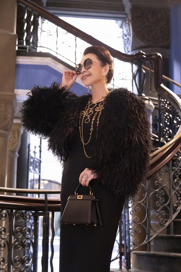 Diễn viên Diễm My diện trang phục màu đen, phối áo khoác lông, phụ kiện Chanel, mang túi Prada size . Diễn viên Diễm My đồng hành cùng NTK Đỗ Mạnh Cường hơn chục năm qua. Chị hầu như ít nhận lời tham gia các sự kiện giải trí, nhưng với NTK họ Đỗ thì không bao giờ nói không.