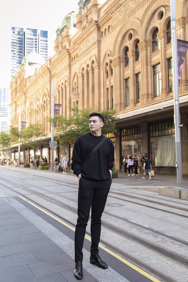 Diễn viên Ninh Dương Lan Ngọc diện đầm cúp ngực, bằng vải gấm, mang giày platform thời thượng. Nữ diễn viên là “nàng thơ” của thương hiệu SIXDO. Lan Ngọc cũng đến Sydney sớm để hoàn thành một số công việc với ê-kíp của Đỗ Mạnh Cường, trước thềm show diễn. Lê Xuân Tiền diện “cây đen” trẻ trung.