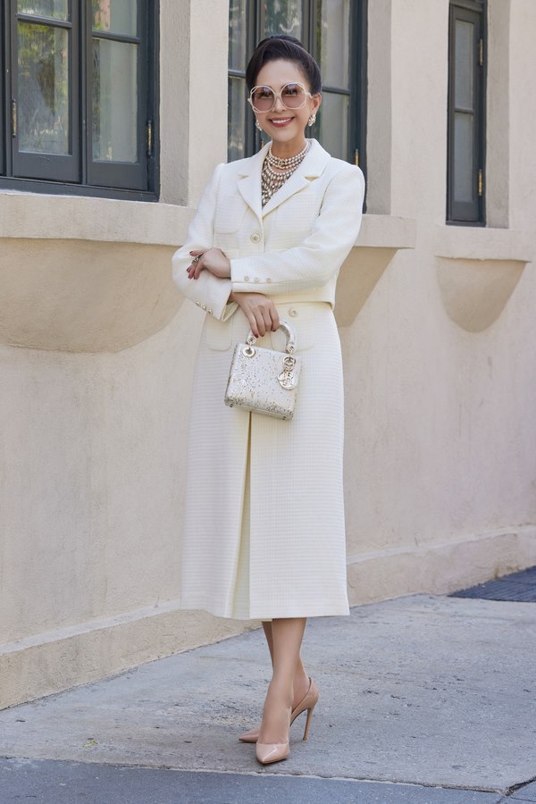 Trong chuyến đi Mỹ, diễn viên Diễm My mang theo những chiếc túi nhỏ xinh, đến từ các thương hiệu hàng đầu thế giới như: Delvaux, Dior, Prada… phối đồng điệu với loạt trang phục vải tweed được NTK Đỗ Mạnh Cường thực hiện riêng cho mình.