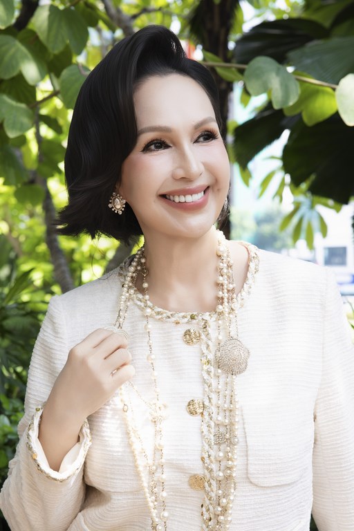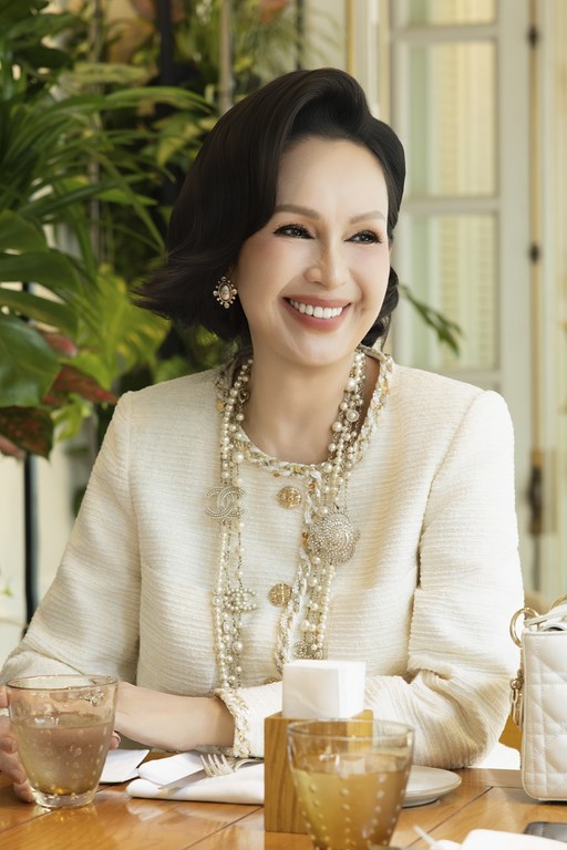 Trong buổi tiệc, Diễm My xuất hiện trẻ trung với thiết kế thanh lịch bằng vải tweed của Đỗ Mạnh Cường, kết hợp loạt trang sức của Chanel, túi Chanel, Dior đồng điệu màu sắc. Vẻ ngoài rạng rỡ của nữ hoàng ảnh lịch một thuở khiến nhiều người bất ngờ bởi sự trẻ trung, năng lượng dồi dào.
