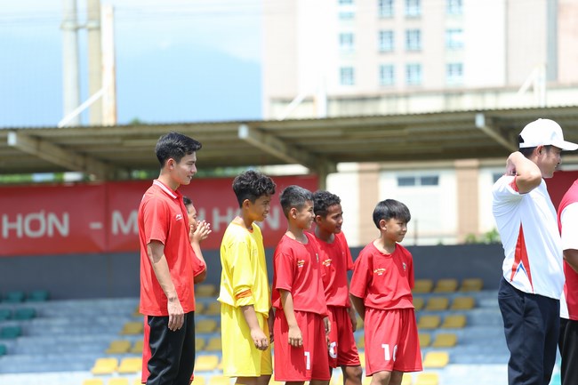 Chứng kiến khoảnh khắc ấy, bảo mẫu Lê Bống xúc động chia sẻ: “Trong tôi có những cảm xúc đặc biệt, hóa ra cũng có những chàng trai từng ở cương vị giống các Cầu thủ nhí 2025 năm nay, cũng có khát khao hoài bão với trái bóng. Với mọi người có thể đó chỉ là một cuộc gặp mặt bình thường, nhưng đối với các cầu thủ nhí thì đó như thắp lên một tia sáng, vút lên với khát khao một ngày có thể sẽ được như anh Quý, được trở thành thành viên của CLB lớn”.