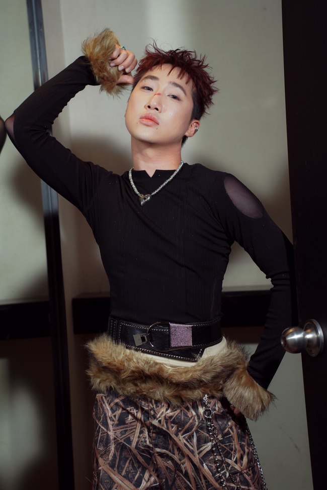 Anh kể lại: “Lúc được chăm chút cho layout kinh dị trên gương mặt mình, mà cứ hở chút là em mở camera điện thoại ra xem mặt mình kinh dị như thế nào. Team đã make up cái miệng bị xé của em ra sao, rồi thêm những chiếc răng giả xiêu vẹo lúc bị xé – đó là cả một tác phẩm nghệ thuật. Em còn cử động cơ mặt để cảm nhận chất liệu hóa trang đó là gì, vị nó ra sao.”