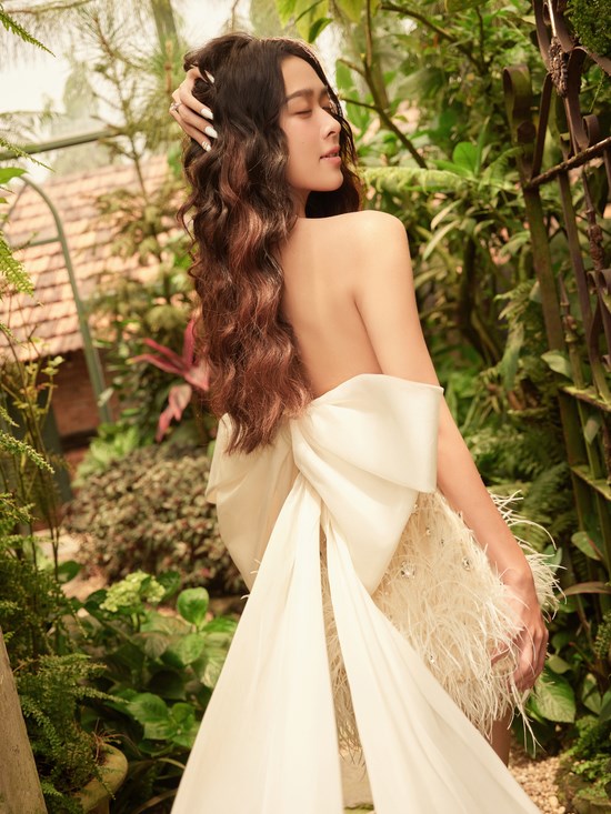 Chọn màu vàng đồng và hồng làm chủ đạo cho bộ ảnh, nữ diễn viên họ Diệp diện đầm công chúa với chiếc nơ khổ lớn tạo ấn tượng khi khoe vòng một đầy đặn. Dù sắp bước đến ngưỡng 30 nhưng Diệp Bảo Ngọc vẫn luôn chứng tỏ sức hút khi xuất hiện ở bất cứ sự kiện nào.