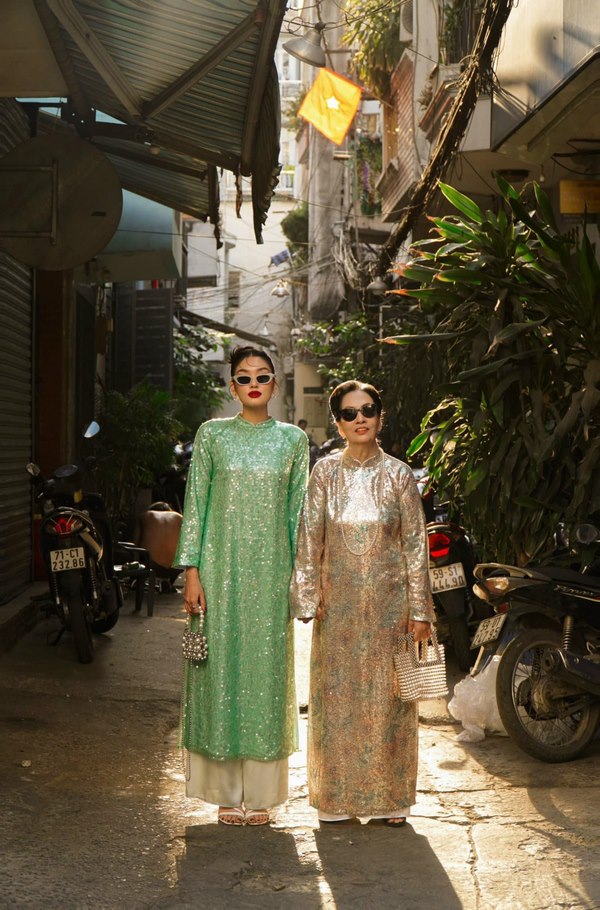 Bên cạnh tình thân từ gia đình, bộ ảnh còn thể hiện được sự nhạy bén về thời trang của Thảo Nhi Lê qua hai bộ áo dài hết sức toả sáng và lấp lánh. Với chất liệu sequin đang là xu hướng hot nhất năm nay, cô nàng đã lựa chọn thương hiệu ứng dụng trào lưu thời trang này vào áo dài truyền thống của dân tộc mà không hề phản cảm. Trong tầm ngắm của xu hướng, không chỉ những bộ quần áo được nhấn nhá các yếu tố lấp lánh, mà còn cả các món phụ kiện như túi xách, giày hay trang sức. Trang phục áo dài đính sequin mà hai bà cháu diện để chụp bộ ảnh Tết đến từ XÉO XỌ, thương hiệu váy áo thanh lịch và sản phẩm đặc trưng nhất của họ là những tà áo dài thấm đậm cảm hứng từ lịch sử, văn hóa và con người Việt Nam. Tà áo dài vì vậy mà rất phù hợp với tính cách của nàng Á hậu, phóng khoáng, hiện đại nhưng cũng kém phần dịu dàng, đằm thắm của người phụ nữ Á đông.
