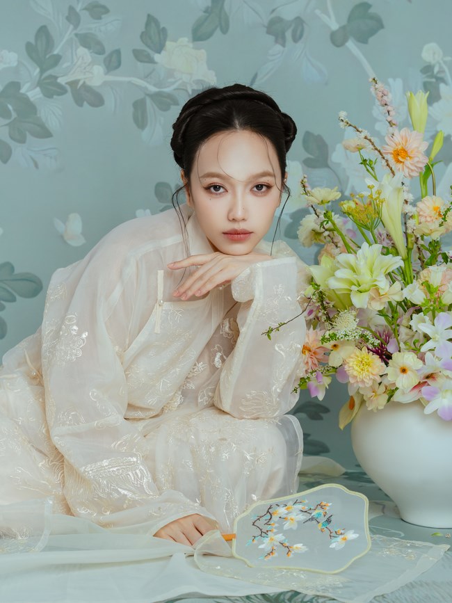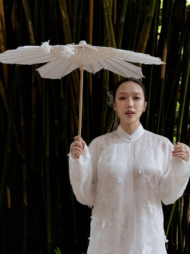 Trong bộ ảnh mới, Diệu Nhi diện các thiết kế truyền thống với chất liệu, màu sắc khác nhau. Tông trắng, pastel nhẹ nhàng được nữ diễn viên ưu ái hơn cả khi mang đến hình ảnh nàng thơ. Nữ chính Gặp Lại Chị Bầu thử sức từ áo dài dáng suông có áo khoác ngoài, áo dài cổ trụ chiết eo đến mẫu váy yếm cách điệu.
