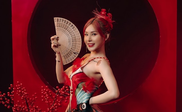Dj T-Tina diện áo dài du Xuân.