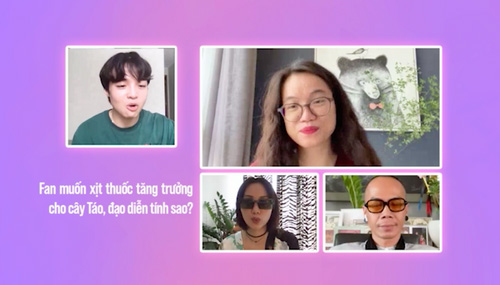 Trong phần chia sẻ, Tun Phạm đại diện cho các fan nhà Táo gửi đến “lời yêu cầu dùng thuốc kích thích tăng trưởng để cây táo mau nở hoa” khiến đạo diễn Võ Thạch Thảo cùng 2 khách mời cười nghiêng ngã. Và ngay sau đó, nữ đạo diễn đã nhanh trí phản hồi với câu trả lời “điểm 10 tròn trĩnh”. Vô cùng đồng cảm với nhân vật trong Cây Táo Nở Hoa, các fan còn đòi Hạnh ly dị Ngọc và hứa sẽ cưới cho chị 7749 tấm chồng “ngon lành cành đào”. Đứng trước câu hỏi này, đạo diễn Võ Thạch Thảo liền gọi cho chính chủ là diễn viên Hồng Ánh để đáp lại tấm chân tình của các fan ruột. Nhận được cuộc gọi, chị Hạnh không chỉ đáp lại vô cùng hài hước mà còn chia sẻ thêm loạt tin nhắn có một không hai mà các fan ngày đêm đã “nổ inbox” facebook mình.
