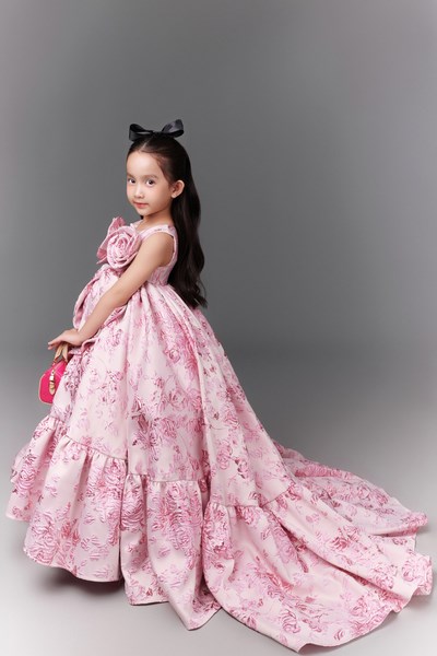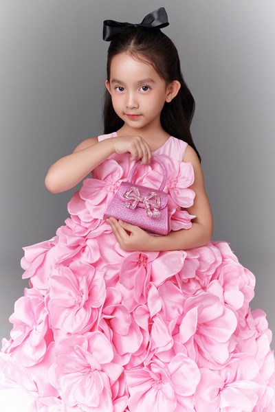 Đỗ Mạnh Cường thường thực hiện các bộ ảnh thời trang cho con. Mới đây nhất, anh thiết kế loạt váy ấn tượng, cầu kỳ cho My My diện cùng những chiếc túi hiệu với sắc hồng làm chủ đạo.