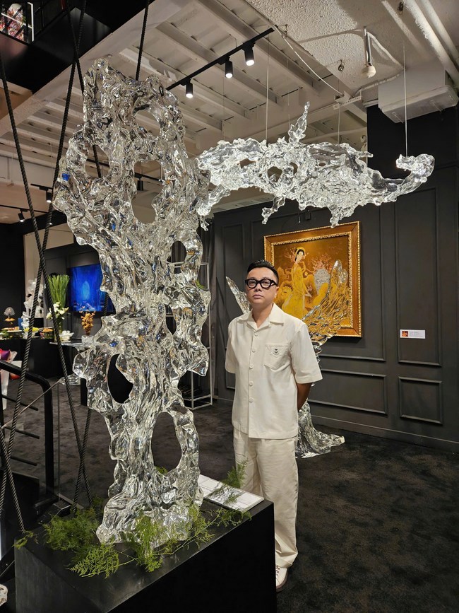 Điểm nhấn thị giác của triển lãm là chiếc ghế Pha lê băng đảo “Angel Chair” – ghế đôi cánh thiên thần, được trưng bày tại sảnh chính. Tác phẩm biểu tượng cho khát vọng bay xa, tự do sáng tạo và những giá trị nghệ thuật không ngừng thăng hoa – đúng tinh thần mà Hoàng Nam Group và Gordon Gu cùng hướng đến.