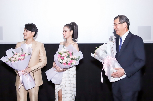 Với vai trò cặp đôi đồng hành cùng sự kiện, Đông Nhi và Ông Cao Thắng bày tỏ háo hức. Họ chăm chú lắng nghe chia sẻ từ các khách mời và theo dõi những thước phim đầu tiên của tuần lễ điện ảnh.