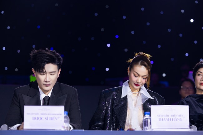 Dược sĩ Tiến và siêu mẫu Thanh Hằng tại buổi bán kết Hoa khôi sinh viên 2024.