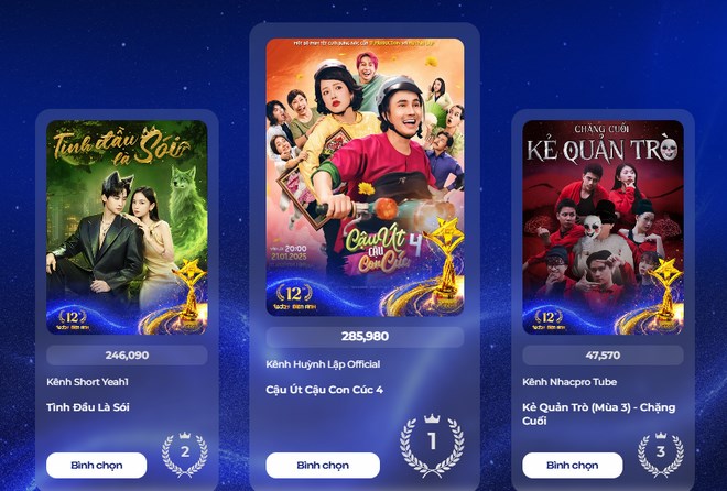 Không Gian Mạng tiếp tục là “đấu trường” sôi động nhất với sự cạnh tranh sát sao giữa các gương mặt quen thuộc. Huỳnh Lập, Minh Dự, Duy Khánh và Võ Tấn Phát liên tục thay đổi thứ hạng, phản ánh đặc thù năng động và tốc độ lan tỏa mạnh của nội dung số. Lâm Vỹ Dạ, NSƯT Ngọc Huyền hay Puka liên tiếp thống trị top 3 lượt bình chọn cao nhất cho giải Nữ diễn viên được yêu thích nhất. Khoảng cách bình chọn giữa các vị trí không quá lớn, hứa hẹn nhiều bất ngờ ở chặng nước rút.