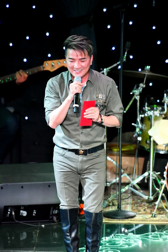 Xuất hiện cùng Dương Triệu Vũ là đàn anh thân thiết Đàm Vĩnh Hưng. Cũng như hình ảnh thường thấy, “ông hoàng nhạc Việt” gây ấn tượng với thời trang đẳng cấp và dát kim cương khắp người. Anh còn gây chú ý khi đeo đồng hồ có giá ước tính gần 2 tỷ đồng.