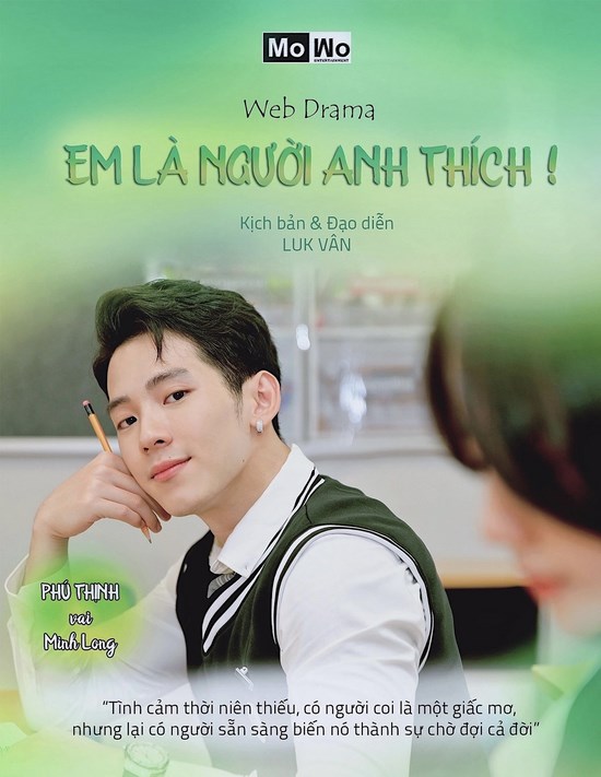 Webdrama “Em là người anh thích” bởi của đạo diễn Luk Vân do công ty giải trí Mowo Entertainment sản xuất. Bộ phim được khai thác xoay quanh những câu chuyện gia đình, chuyện học đường của giới siêu giàu được mong chờ nhất mùa Hè 2022. Khán giả nhớ đón xem diễn biến của webdrama “Em là người anh thích” vào lúc 19h30 thứ tư hàng tuần từ ngày 13/4/2022 trên kênh Youtube Mowo Chanel!