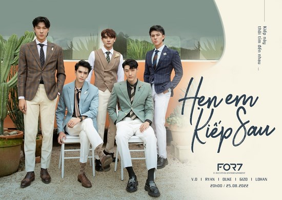 Trước những mong mỏi của người hâm mộ, FOR7 tiếp tục hé lộ dự án mới mang tên “Hẹn em kiếp sau” cùng bộ ảnh được thực hiện tại Đà Lạt. 5 chàng trai của nhóm mang đến hình ảnh ấn tượng khi diện vest màu sắc, vừa trẻ trung nhưng cũng rất sang trọng, lịch lãm. Ngoại hình thư sinh, điển trai của FOR7 nhanh chóng chiếm được cảm tình của người hâm mộ.