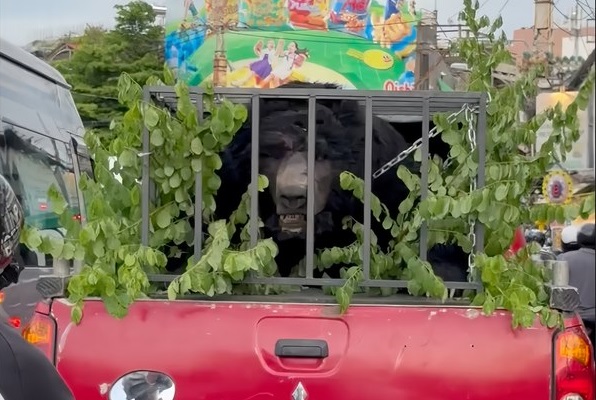 Trong những ngày qua, nhiều khán giả đã hết sức bất ngờ, thậm chí “giật bắn người” vì trông thấy nguyên một con gấu, hay đúng hơn là mô hình gấu to lớn xuất hiện ngoài đường phố. Hình ảnh gương mặt con gấu hung hãn nằm trên xe, được chở đi khắp nơi nhanh chóng được nhiều người qua đường bắt chụp lại, gây xôn xao MXH.