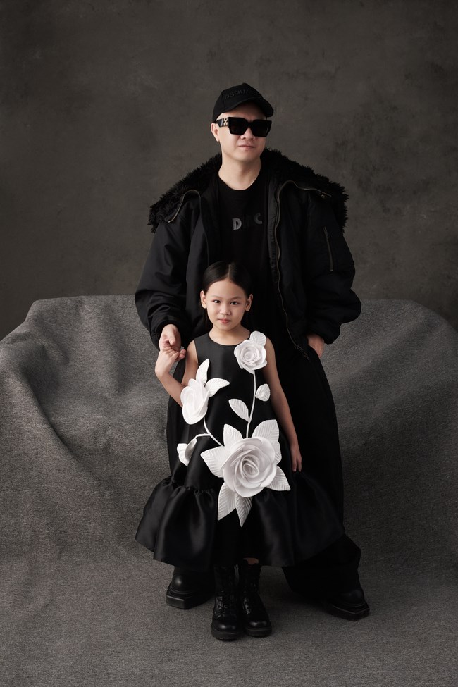 Sau một năm bận rộn, NTK Đỗ Mạnh Cường, CEO Phạm Huy Cận dành thời gian sum vầy bên cạnh các con trong dịp tết. Cả gia đình diện trang phục đồng điệu với sắc đen làm chủ đạo. Những bộ váy dành cho các bé gái là phiên bản mini của những thiết kế được yêu thích thời gian qua của Đỗ Mạnh Cường. Chúng được tạo điểm nhấn bằng những bông hoa 3D to bản.