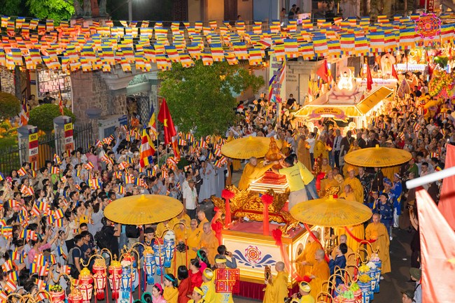 Đặc biệt, đã có hơn 40 nghệ sĩ nổi tiếng tham gia buổi diễu hành cung rước tôn tượng Đức Phật Đản Sanh trên cung đường diễu hành hơn 2 cây số: xuất phát từ Tổ đình Ấn Quang ra đường Sư Vạn Hạnh, diễu hành qua các cung đường Ngô Gia Tự – Điện Biên Phủ – Cao Thắng – Ba Tháng Hai sau đó trở về lễ đài chính đặt tại Việt Nam Quốc Tự. Đoàn rước kéo dài với hàng nghìn Tăng Ni – Phật tử trong đội diễu hành, hơn 41 xe hoa Phật Đản, rất đông người dân hai bên đường đổ ra chiêm bái khi đoàn rước diễu hành trên đường phố. Đoàn diễu hành với sự tham gia của các nghệ sĩ đã tạo nên một không gian văn hóa đặc sắc, thu hút sự chú ý của công chúng, góp phần lan tỏa thông điệp hòa bình, tình thương và trí tuệ đến với cộng đồng.