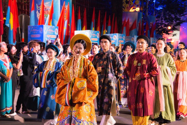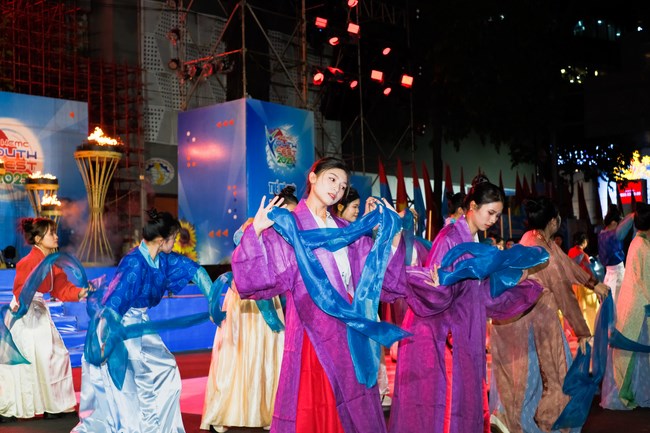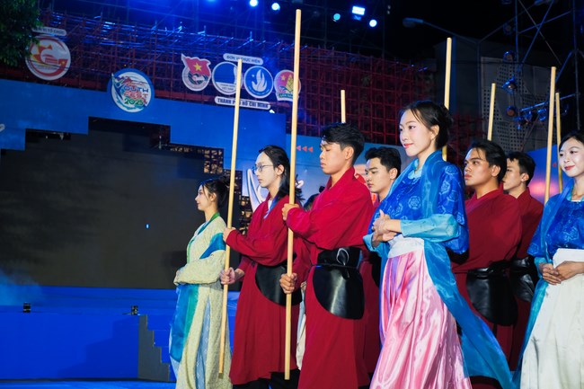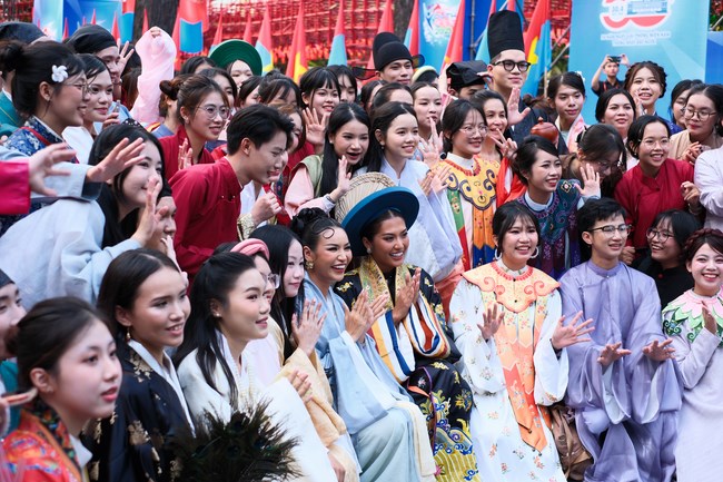 Đây không chỉ là sân khấu của những bộ Việt phục lộng lẫy, mà còn là nơi mỗi bước chân trên sàn diễn đều khẳng định một tuyên ngôn mạnh mẽ: thế hệ trẻ hôm nay không chỉ kế thừa di sản, mà còn viết tiếp câu chuyện văn hóa theo cách của chính mình. Khoảnh khắc hàng nghìn các bạn tình nguyện viên trong trang phục truyền thống Việt Nam cùng thực hiện các động tác trên nền ca khúc Một Vòng Việt Nam thực sự mang đến một cảm giác đầy tự hào.