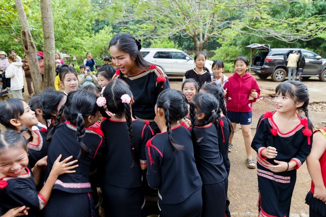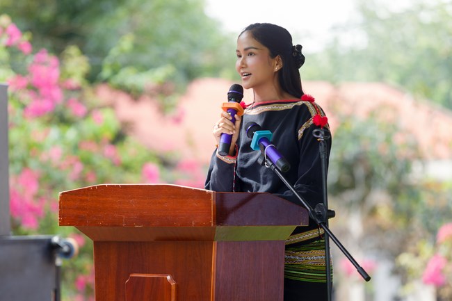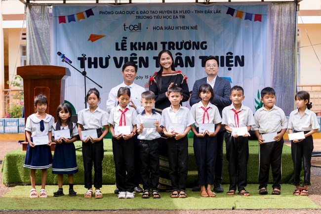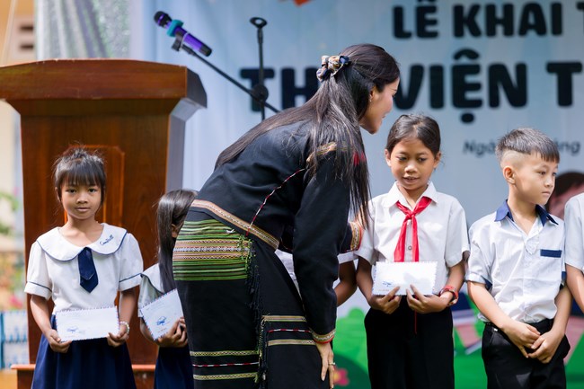 Hoa hậu H’Hen Niê diện trang phục truyền thống Ê đê, hạnh phúc khi khánh thành thư viện ở quê . Cô chia sẻ: “Hen hy vọng rằng những quyển sách này sẽ giúp cho các em khám phá bản thân mình, trưởng thành và cốt lõi chính là hình thành thói quen đọc sách cho các em. Để không chỉ các em đọc sách, mà các em còn đọc sách cho ông bà, cha mẹ mình nghe. Hen nhớ có một lần Hen đi trao thư viện, Hen thấy hình ảnh một em học sinh đọc sách cho mẹ nghe. Ôi lúc đó Hen xúc động thật sự. Hen thấy có động lực nhiều hơn để tiếp tục khánh thành nhiều thư viện thân thiện, bởi thư viện chứa đựng giá trị rất lớn”. Cũng trong chuyến đi, Hoa hậu H’Hen Niê cùng đoàn T-Cell đã trao 10 phần học bổng cho các em học sinh có hoàn cảnh khó khăn và sữa Vinamilk gửi tặng những thùng sữa dinh dưỡng cho các em.